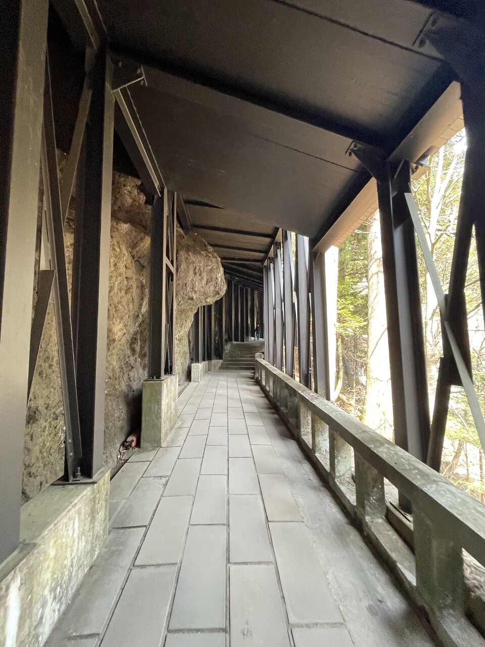 岩のトンネルを抜けると、巨大な岩の上にそびえる木々が立ちはだかる